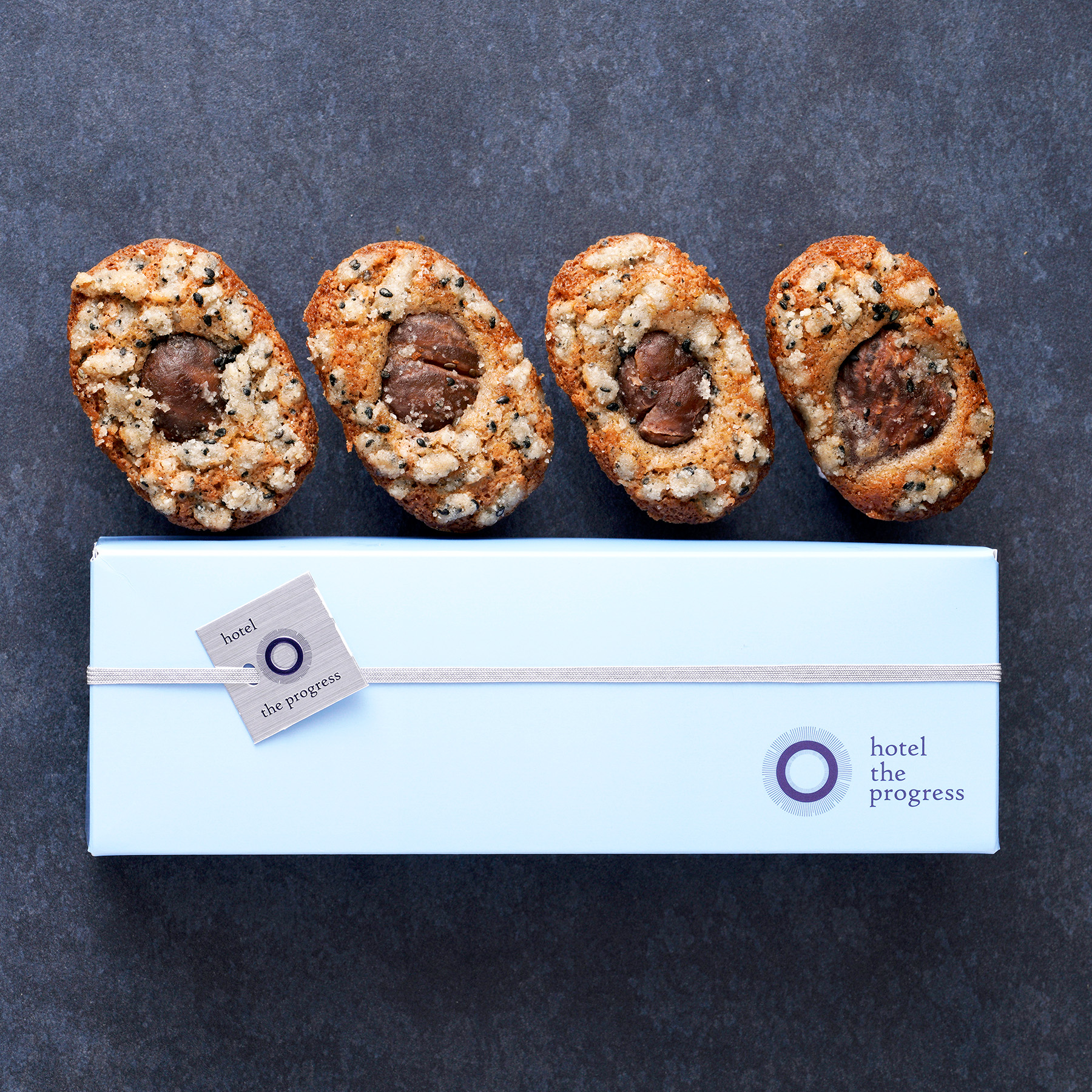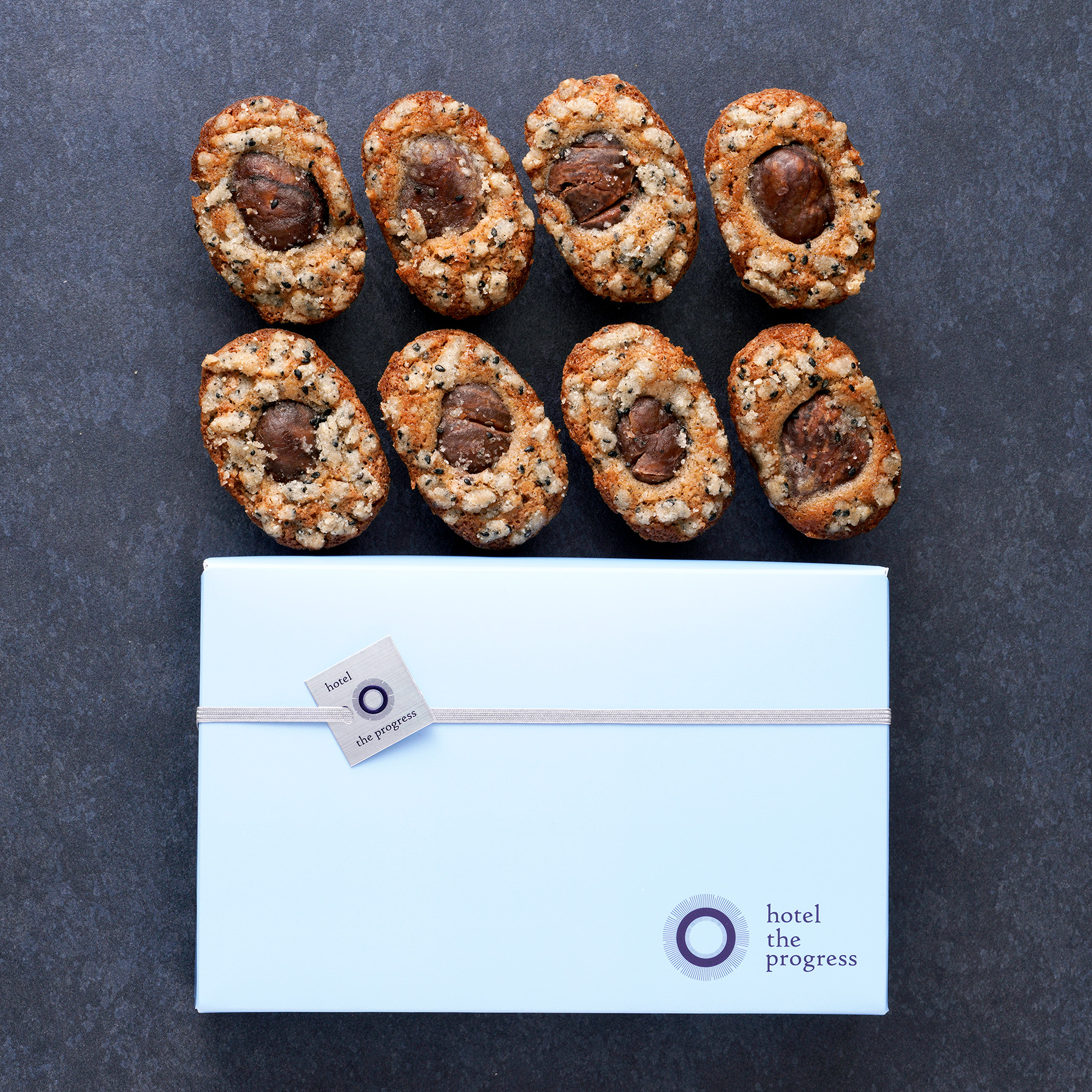 栗の渋皮煮を贅沢に包み込み、胡麻の香りとともに楽しめる特別なフィナンシェ。