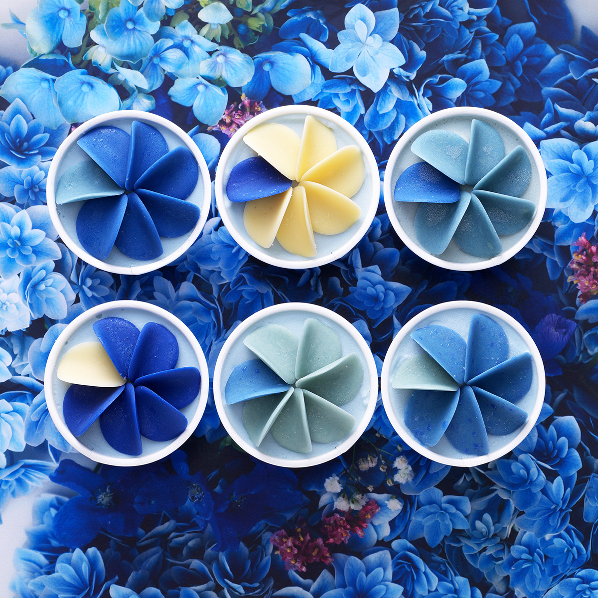 hotel the progressのシグネチャーでもあるスピルリナブルーを使い、紫陽花のようなグラデーションを表現した限定シリーズ。